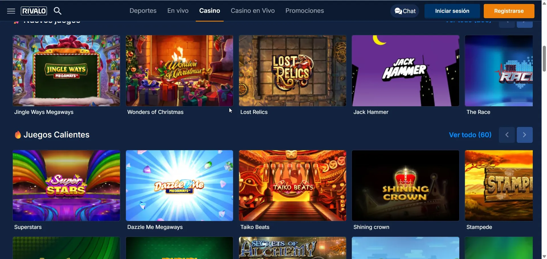¿Qué juegos hay en Rivalo Casino (tragamonedas, ruleta, blackjack y casino en vivo)?